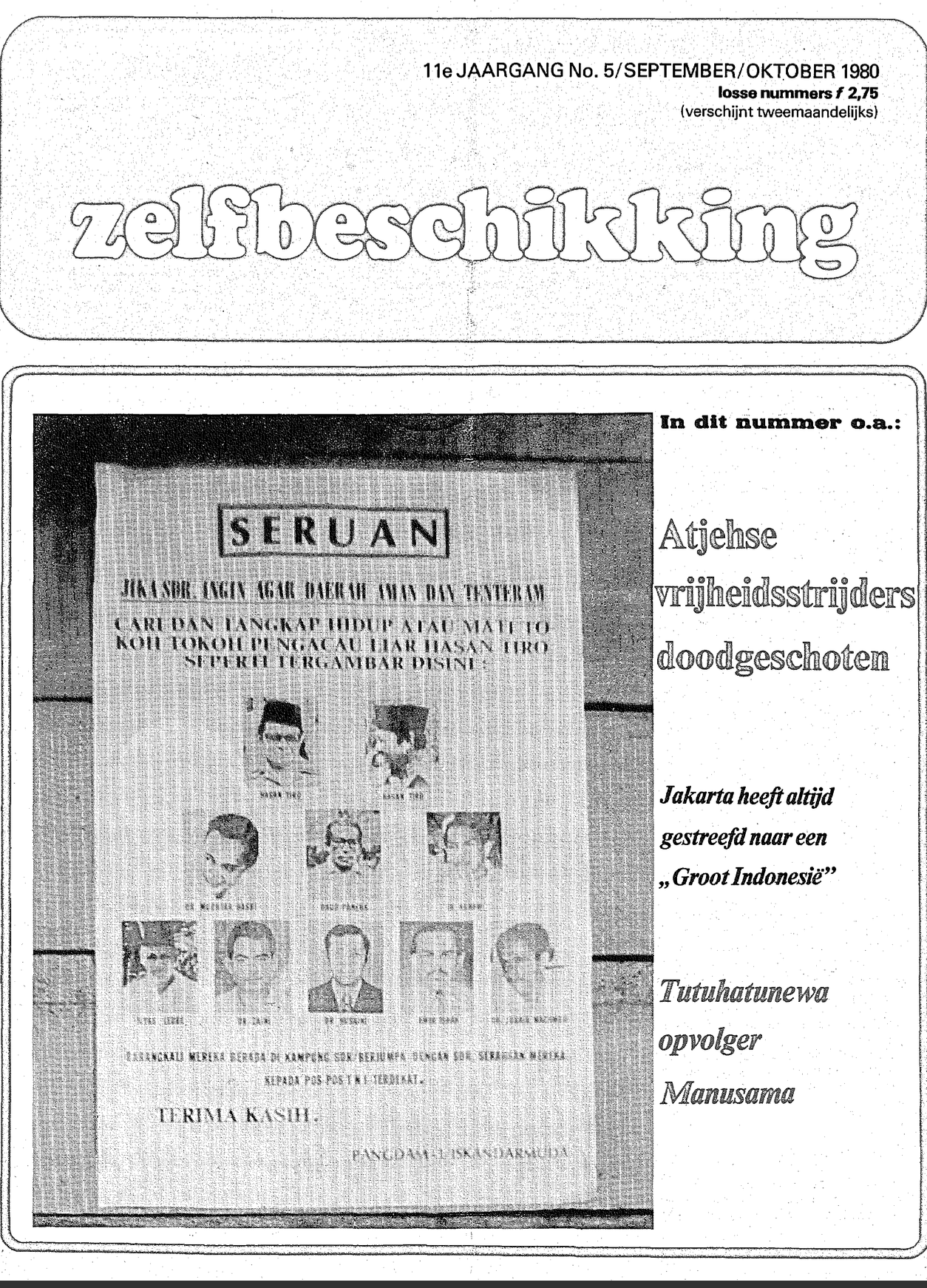 Rond dezelfde tijd verschijnt Zelfbeschikking, dat politiek engagement combineert met maatschappelijke betrokkenheid. Als opvolger van De Stem van Ambon breidt het blad zijn blik uit naar andere vrijheidsbewegingen, zoals in Atjeh, en behandelt het thema’s als integratie, identiteit en onderwijs binnen de Molukse gemeenschap. Door bijdragen van meerdere Molukse schrijvers bood Zelfbeschikking een breder en representatiever beeld van de gemeenschap.